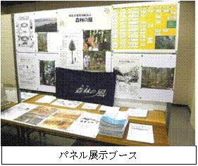 また、展示ブースでは「まなびの森」で展示を行っているパネルを使い、会の紹介をしました。